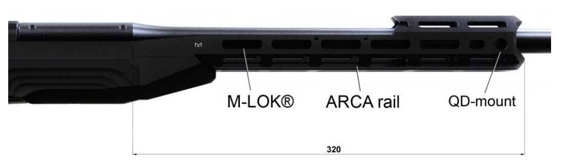 AKILA ARCA Foreend is a fully milled out of a 7075 T651 aluminium billet and has a black hard coat anodized finish. AKILA ARCA Foreend is supplied with a take down AKILA Foreend Upper for top mounted accessories. The upper bridge is easily removed and can be installed in different positions to ensure optional distance between the scope and the front mounted accessories. Up to two AKILA Foreend Uppers can be installed. The six sides of the foreend feature M-LOK™ mounting interface and QD sling swivel sockets at the very front, at 3 and 9 o’clock. The 6 o’clock side features a full length ARCA Swiss rail.